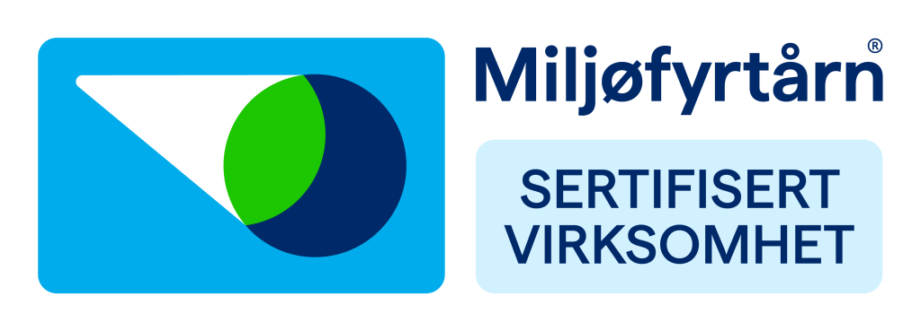Det siste året har vi vært gjennomgått en omfattende prosess for å bli kvalifisert til Miljøfyrtårn. Vi har et bevisst forhold til vårt fotavtrykk og har etablert nye miljøvennlige rutiner og mål for at vår virksomhet skal bli enda mer bærekraftig. Vi stiller høye krav til oss selv og våre samarbeidspartnere, og sammen vil vi bidra til en bærekraftig hverdag.
